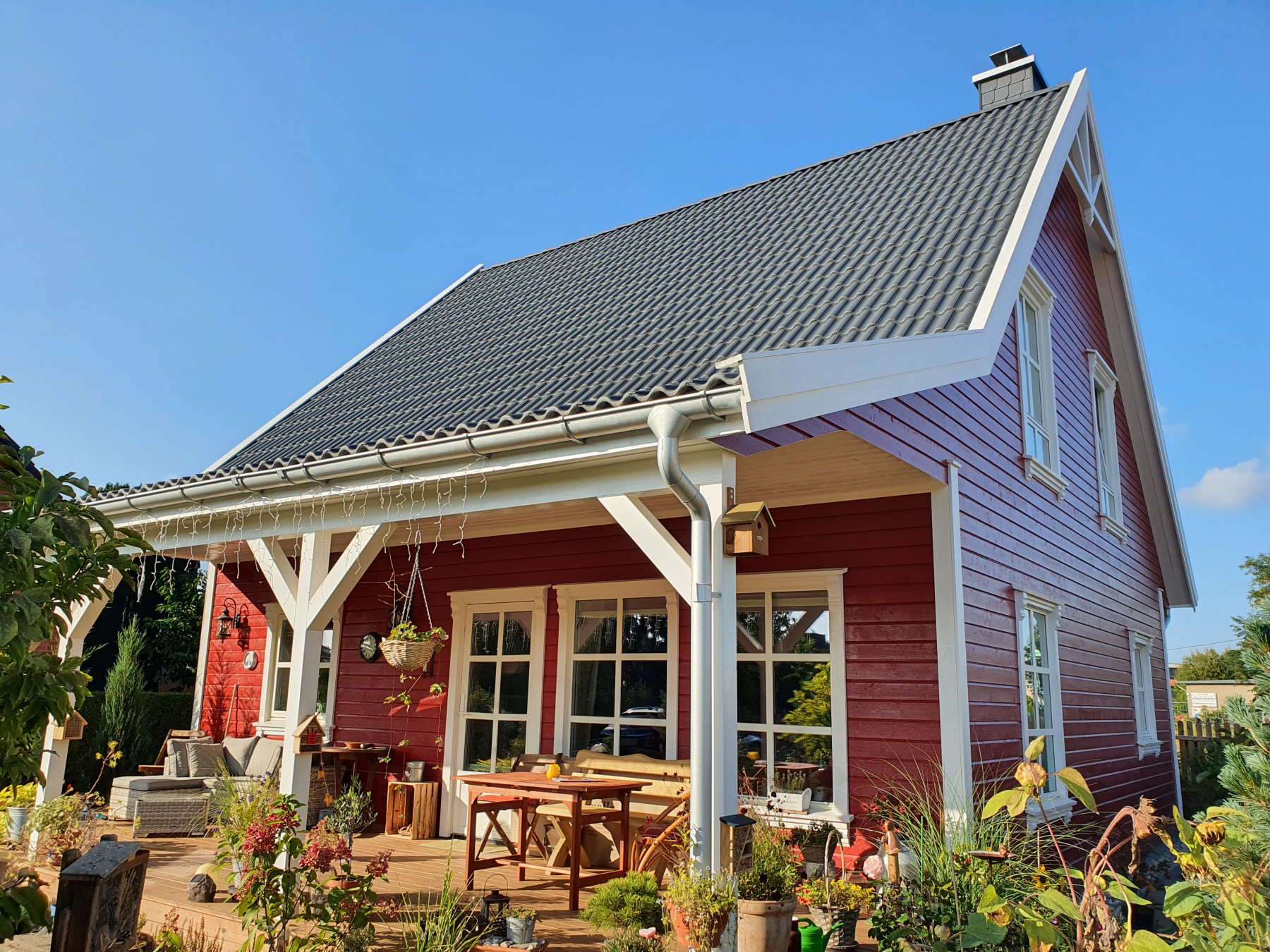 Der auf wenig Grundfläche viele Wünsche erfüllen kann und doch unverwechselbar bleibt durch die norwegische Bauweise. Er bietet an sonnigen wie auch an regnerischen Tagen herrlich Platz auf einer geschützten überdachten Terrasse.