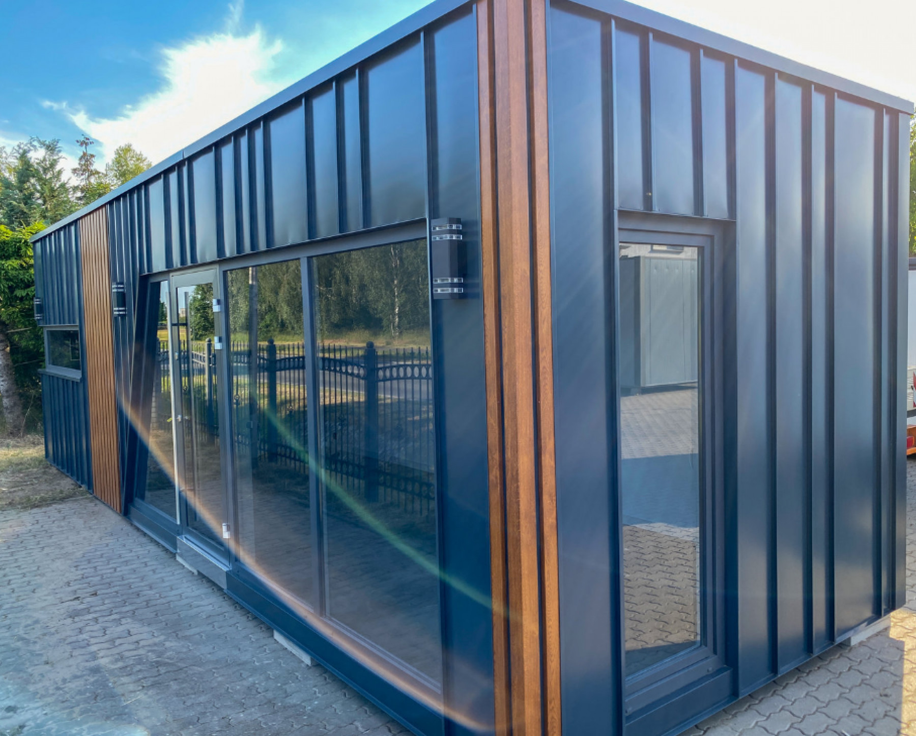 Angeboten wird ein Modulhaus von 70 qm = Außenmaß 7,00 x 10,00 m. Mit Vollausstattung Elektro, Heizung Infrarot, Bad sowie Küche.