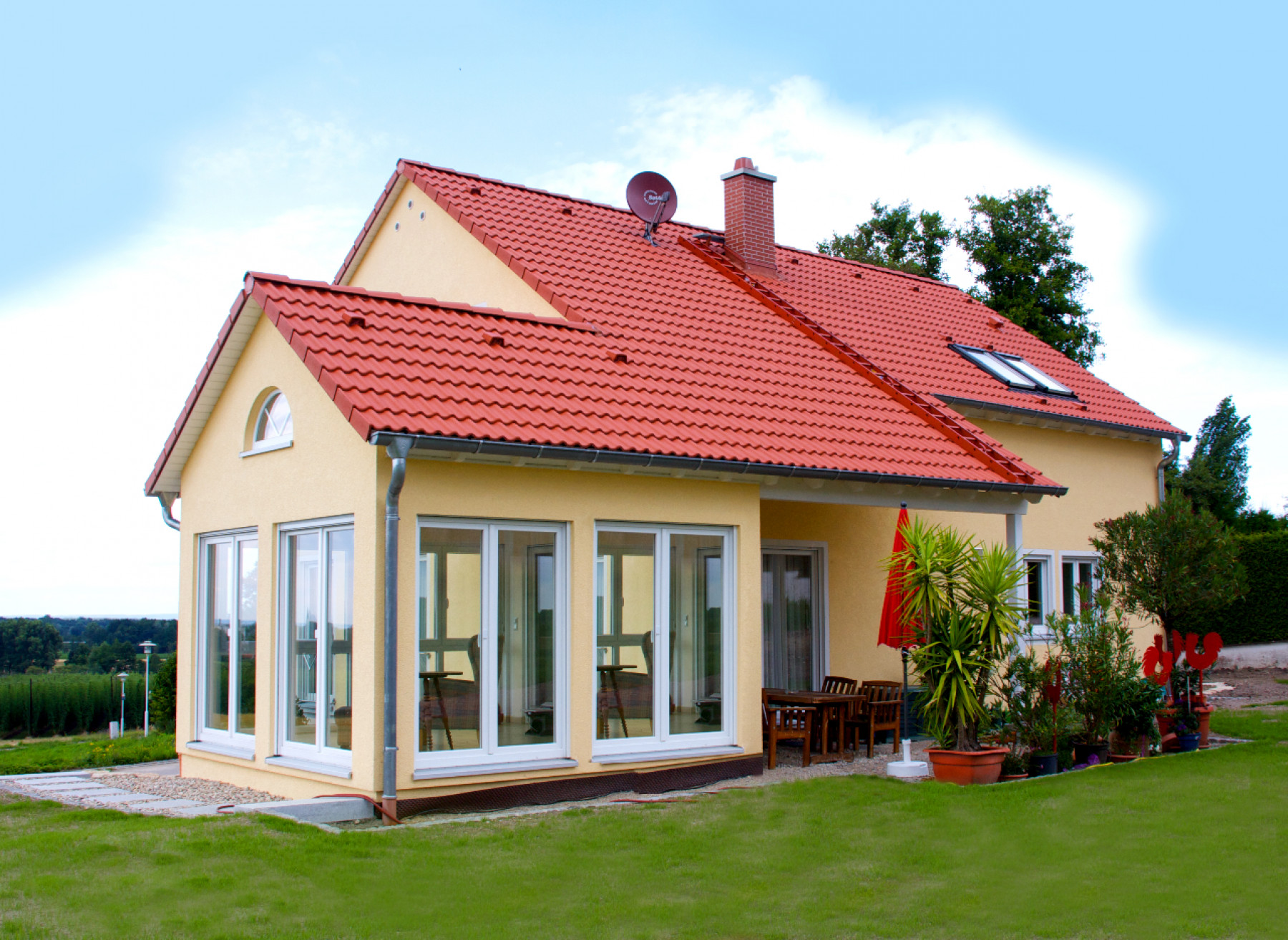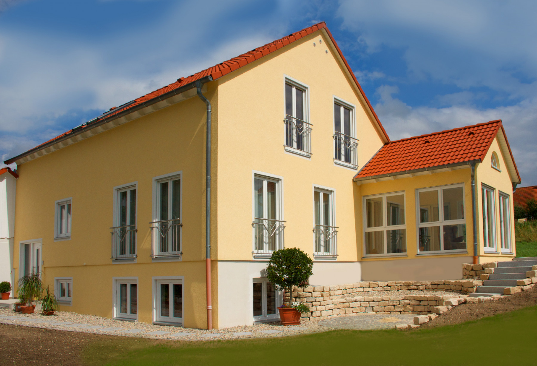FischerHaus baut Einfamilienhäuser, Zweifamilienhäuser oder Doppelhäuser, mediterrane Häuser oder Bungalows als individuelle Kundenhäuser. Typenhäuser baut das Unternehmen nicht – gleichwohl gibt es eine Reihe von Referenzhäusern, an denen sich der künftige Bauherr orientieren kann.