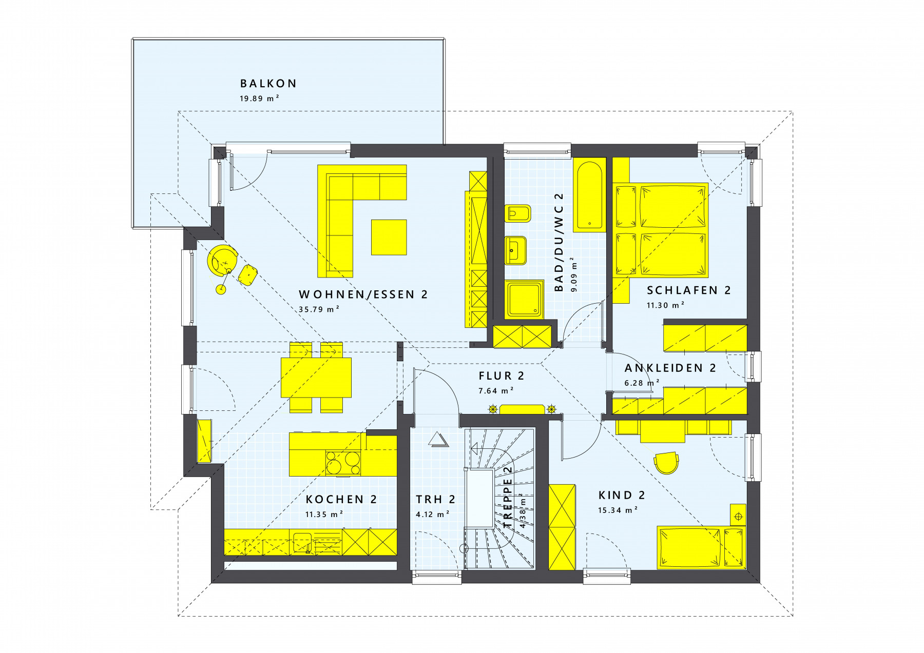 • Der Preis bezieht sich auf den Standard-Leistungsumfang in der Ausbaustufe Ausbauhaus-Plus als Effizienzhaus 55 I-KON Standard inkl. Bodenplatte, Zuhause-Paket und Küche gemäß gültiger Bau- und Leistungsbeschreibung Stand 06/2024 und Preisliste 06/2024. Grundrisse und Abbildungen können Extras zeigen. Flächenangaben nach DIN 277.