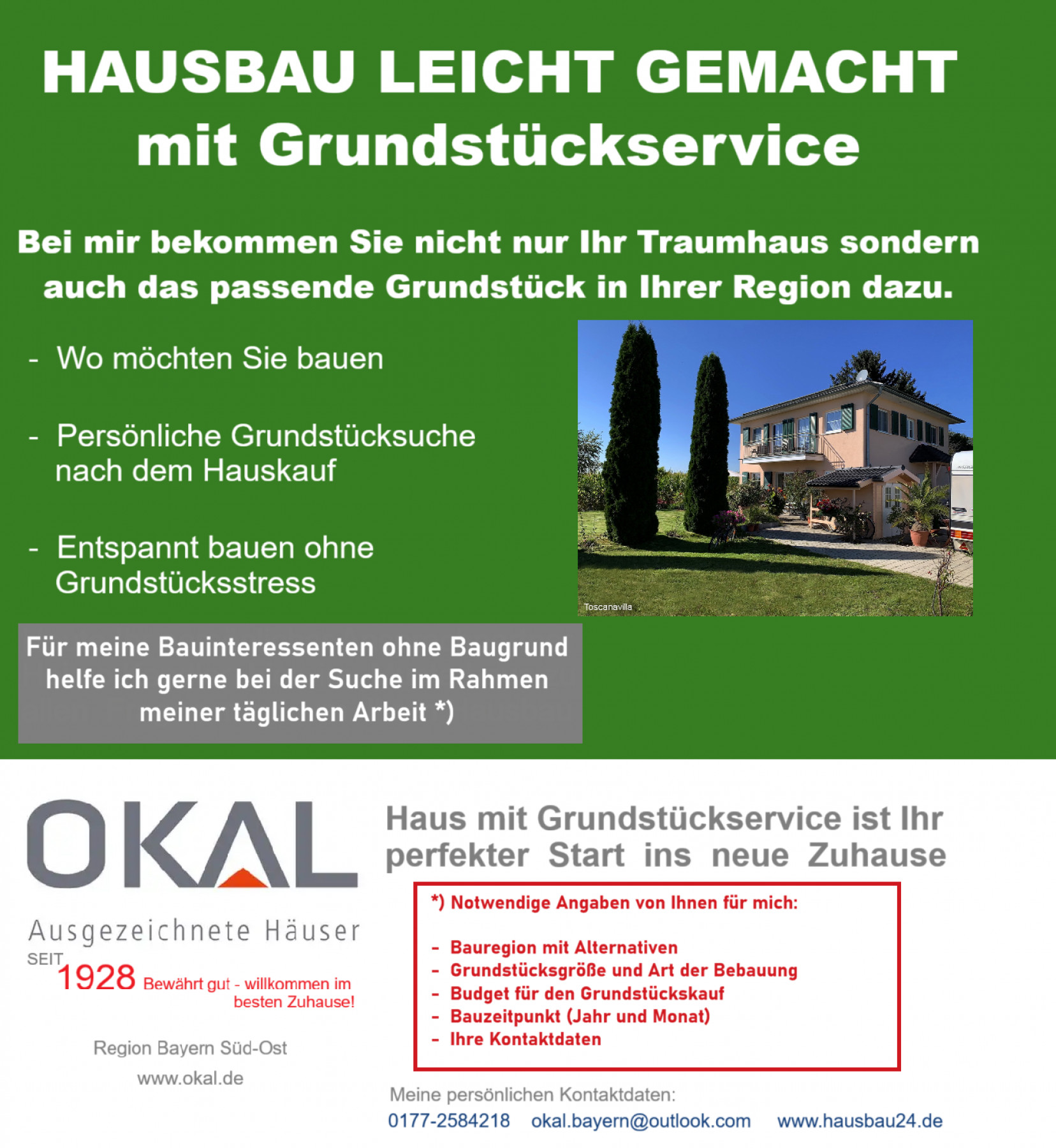 Im Rahmen meiner Arbeit habe ich zahlreiche Kontakte zu Anbietern von Baugrund. Das kann eventuell auf für Sie hilfreich sein, sofern noch nicht das passende Grundstück für den Hausbau gefunden wurde. Ich unterstütze Sie gerne entsprechend, wenn ich von Ihnen die dafür notwendigen Angaben erhalte.