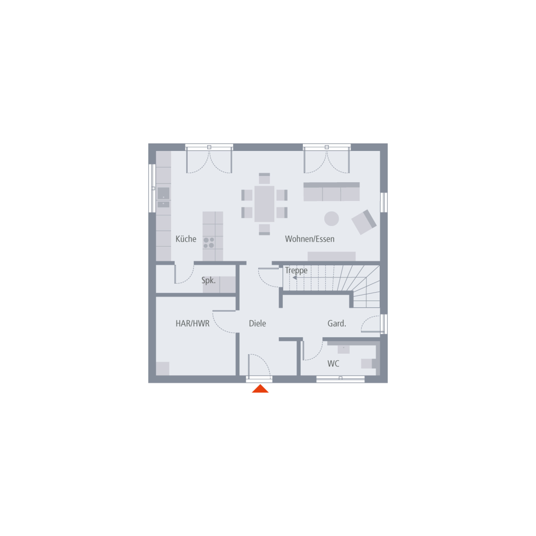 Zeitlos elegant, praktisch und komfortabel – so präsentiert sich unsere Stadtvilla 14. Das Satteldach verleiht dem Gebäude einen besonderen Charme und sorgt dafür, dass es sich perfekt in jedes Wohnumfeld einfügt. Doch auch im Inneren hat das Haus auf einer Wohnfläche von über 140 m² viel zu bieten: Der große und helle Wohn-Koch-Essbereich bildet das Herzstück des Erdgeschosses. Von hier aus ist auch der Zugang zu einer überdachten Terrasse möglich, die wie eine Fortsetzung des Wohnbereichs anmutet. Abgerundet wird das Raumangebot durch eine praktische, weil direkt an die Küche angrenzende Speisekammer, einen geräumigen Hauswirtschaftsraum sowie ein Gäste-WC. Von der großen Diele mit separatem Garderobenbereich führt eine halbgewendelte Treppe ins Obergeschoss – und direkt in die kleine, aber feine Galerie, von der es direkte Zugänge in die vier Räume gibt: zwei Kinderzimmer, ein großes Bad mit Wanne, Dusche und WC sowie den Bereich der Eltern mit Schlaf- und Ankleidezimmer.