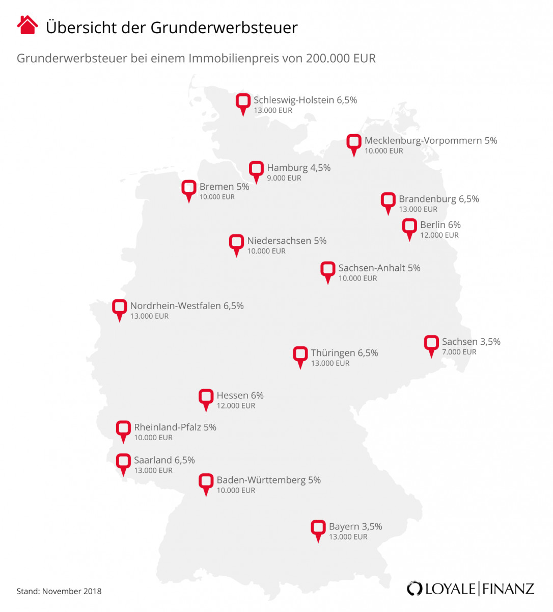 ***Grafik Grunderwerbsteuer Deutschlandkarte*** Quelle: loyalefinanz.de