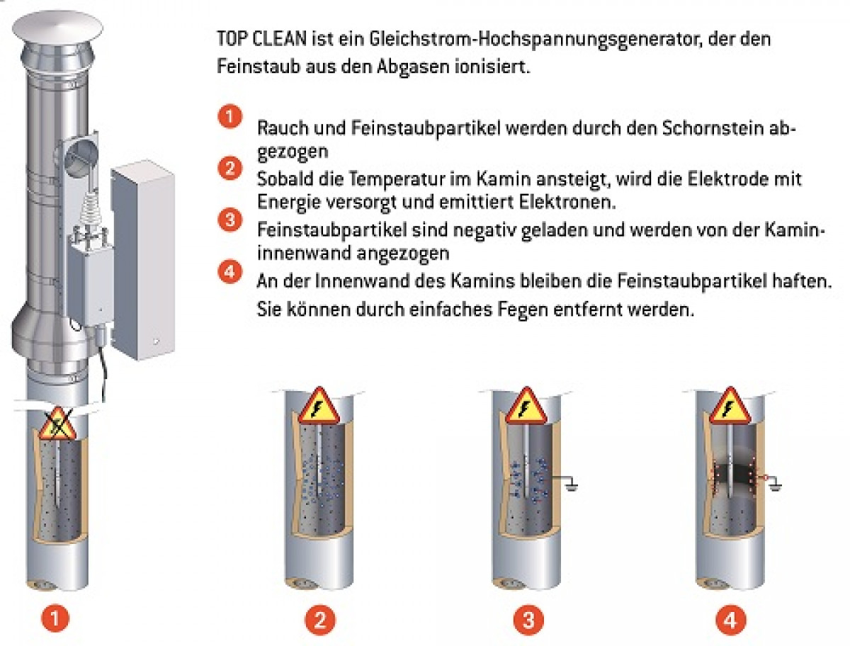 Die passenden Filtersysteme wie beispielsweise TOP CLEAN und TOP CLEAN-INSIDE wurden für Holzfeuerungen mit Stückholz, Pellets und Hackschnitzel entwickelt. Zugelassen sind sie in den Ländern: Deutschland, Schweiz, Italien, Litauen und Frankreich.