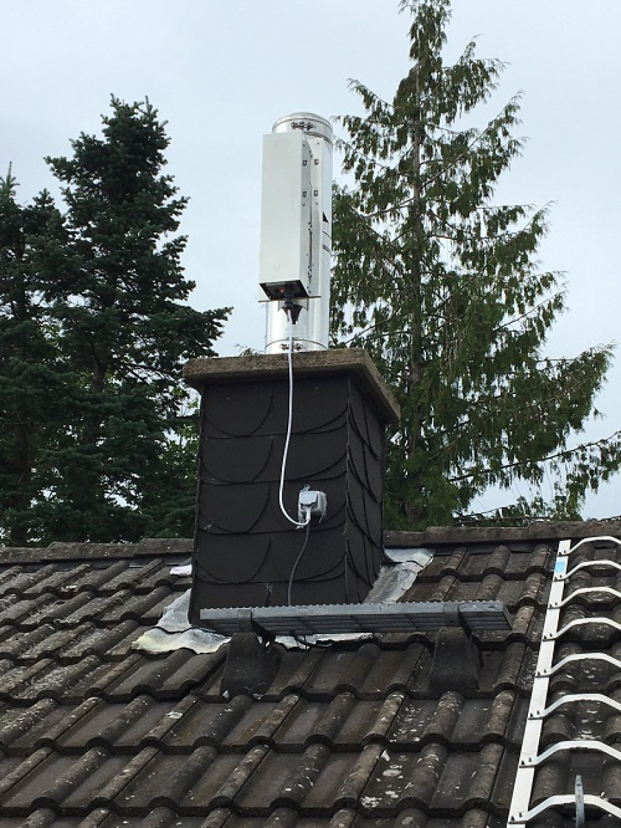 Beim Schornsteinneubau wird ganz einfach der komplette TOP CLEAN Outside als kompakte Einheit auf die Schornsteinmündung aufgesetzt.