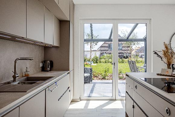 So war es für den Bauherrn nicht nur klar, dass für Nachhaltigkeit und Effizienz nur eine Erdwärmepumpe in Frage kam, die Gebäudehülle sollte auch durchgehend besonders wärmedämmend sein. „Was die Fenster, Haus- und Balkontüren angeht entschieden wir uns daher für ein modernes Fenstersystem von Deceuninck: Elegant Infinity 76 hat uns aufgrund der Optik und der hervorragenden bauphysikalischen Werte überzeugt.“, so Jansen.