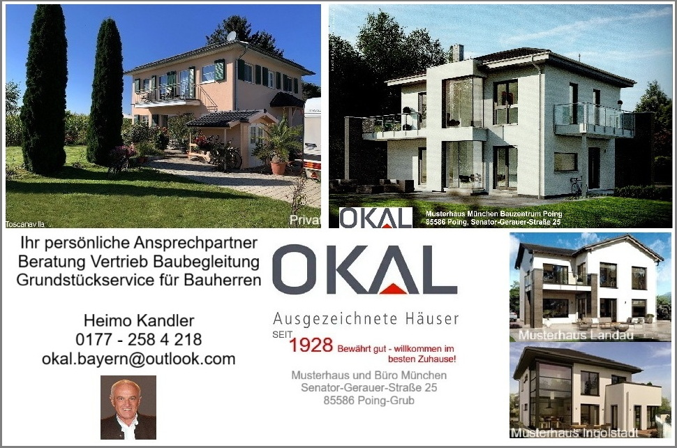 Vereinbaren Sie gerne einen persönlichen Beratungstermin in einem der 3 Musterhäuser in Bayern unter 0177-2584218 OKAL.bayern@outlook.com