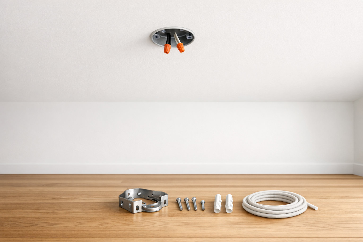 Auch Dachschrägen oder spezielle Deckenkonstruktionen wie Sichtbeton, abgehängte Decken oder Holzbalken beeinflussen die Montage. Je nach Bauweise müssen passende Halterungen und Befestigungslösungen eingeplant werden, um Stabilität und Sicherheit zu gewährleisten.