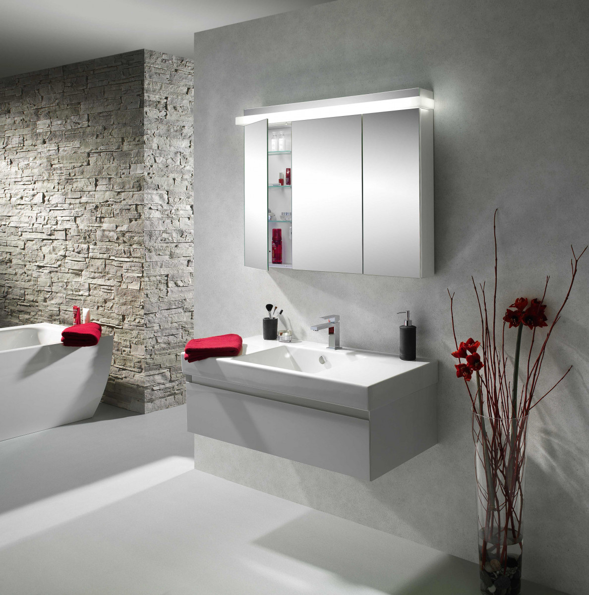 Die Bandbreite der Beleuchtung ist individuell regulierbar durch die manuelle Steuerung über eine unten am Spiegelschrank integrierte Sensorfläche. Die Vorteile: Lichtlösungen mit einem breiten Lichtspektrum können subtil auf die „innere Uhr“ des Menschen, auf Stimmungen und Tageszeiten eingehen und damit entscheidend zum persönlichen Wohlbefinden beitragen. Sie dienen am oberen Ende des Spektrums als blendfreie, helle Ausleuchtung der Spiegelfläche im unteren Bereich sorgen sie für eine wohltuende entspannende Raumatmosphäre. TAIKALINE LED bietet echte Mehrwerte und schenkt noch mehr Wohlbefinden. Weitergehende Informationen finden Sie auch unter www.wschneider.com