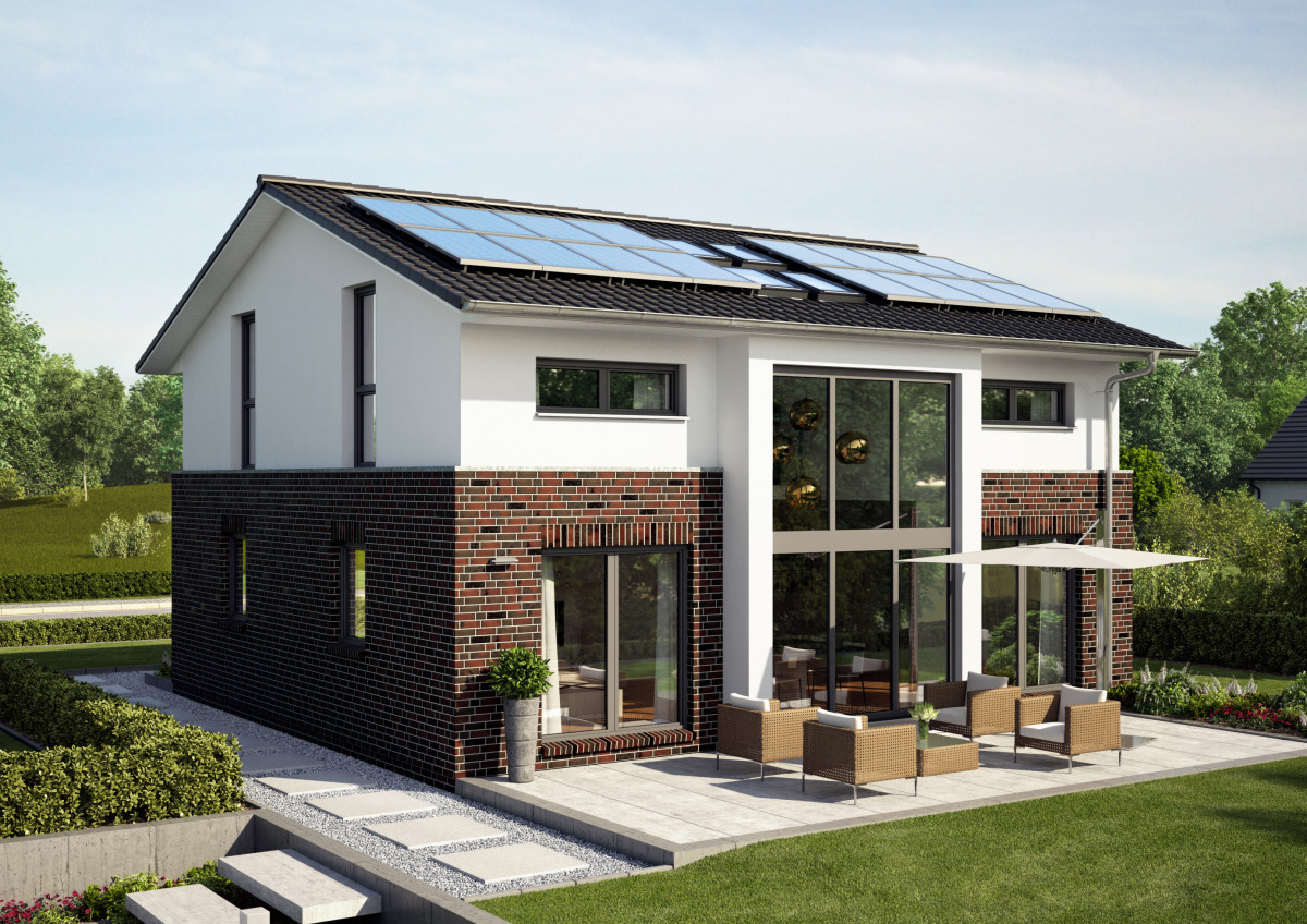„Haus Hamburg“ vereint den Wunsch nach offen verbundenen Räumen mit energetischer Selbstversorgung. Der kubische Baukörper ist Sinnbild für moderne Architektur und spart zudem Energie. Ausgestattet mit 16 Solarmodulen und einem intelligenten hausinternen Batteriespeicher kann hier ausreichend Energie für den Eigenbedarf erzeugt werden.