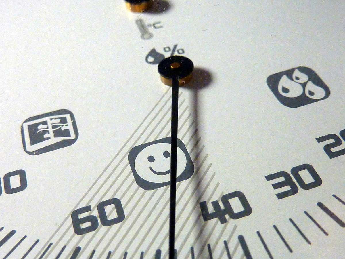 Die richtige Luftfeuchtigkeit sorgt für ein angenehmes Raumklima. In Wohnräumen liegt sie zwischen 40 und 60 Prozent. Messen Sie mit dem Hygrometer die Luftfeuchtigkeit mehrmals täglich. Sollten Sie feststellen, dass tagelang die Luftfeuchtigkeit in einem der Räume ständig zu hoch oder zu gering ist, besteht Handlungsbedarf.