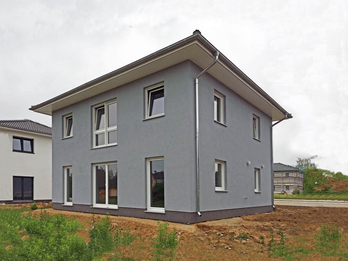 Der energiesparende Entwurf bietet auf zwei Vollgeschossen ausreichend Platz für eine vierköpfige Familie. Den künftigen Bewohnern stehen gut 150 Quadratmeter Wohnfläche zur Verfügung. Die Bauherren haben sich für einen klassischen Grundriss entschieden, der das Haus in Begegnungs- und Ruhezonen unterteilt.