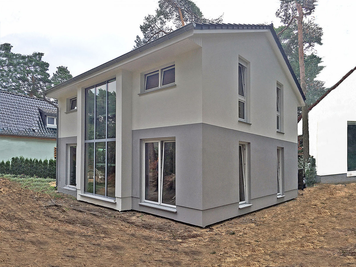 Auch in Sachen Energieeinsparung können sich die Bauherren auf höchste Standards verlassen. Die Luft-/Wasserwärmepumpe, eine kontrollierte Lüftungsanlage und modernes Sonnenschutzglas im Erker sorgen für angenehme Temperaturen zu jeder Jahreszeit.