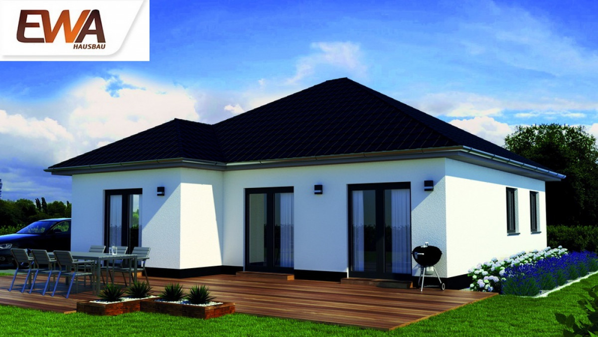 Massiv gebauter Bungalow Sylt 123qm mit 36,5cm Außenmauerwerk, gemauerte Innenwände, engobierte oder edelengobierte Tondachziegel, schwellenlose Innentüren, bodengleich geflieste Dusche, Rollläden an allen Fenstern und Terrassentüren, Hauseingangstür mit Sicherheitsverriegelung inklusive Schwenkriegeln für Ihre zusätzliche Sicherheit, Fußbodenheizung in allen Räumen einzelgesteuert, Wärmepumpe, farbiger Außenputz mit umlaufenden Sockelputz